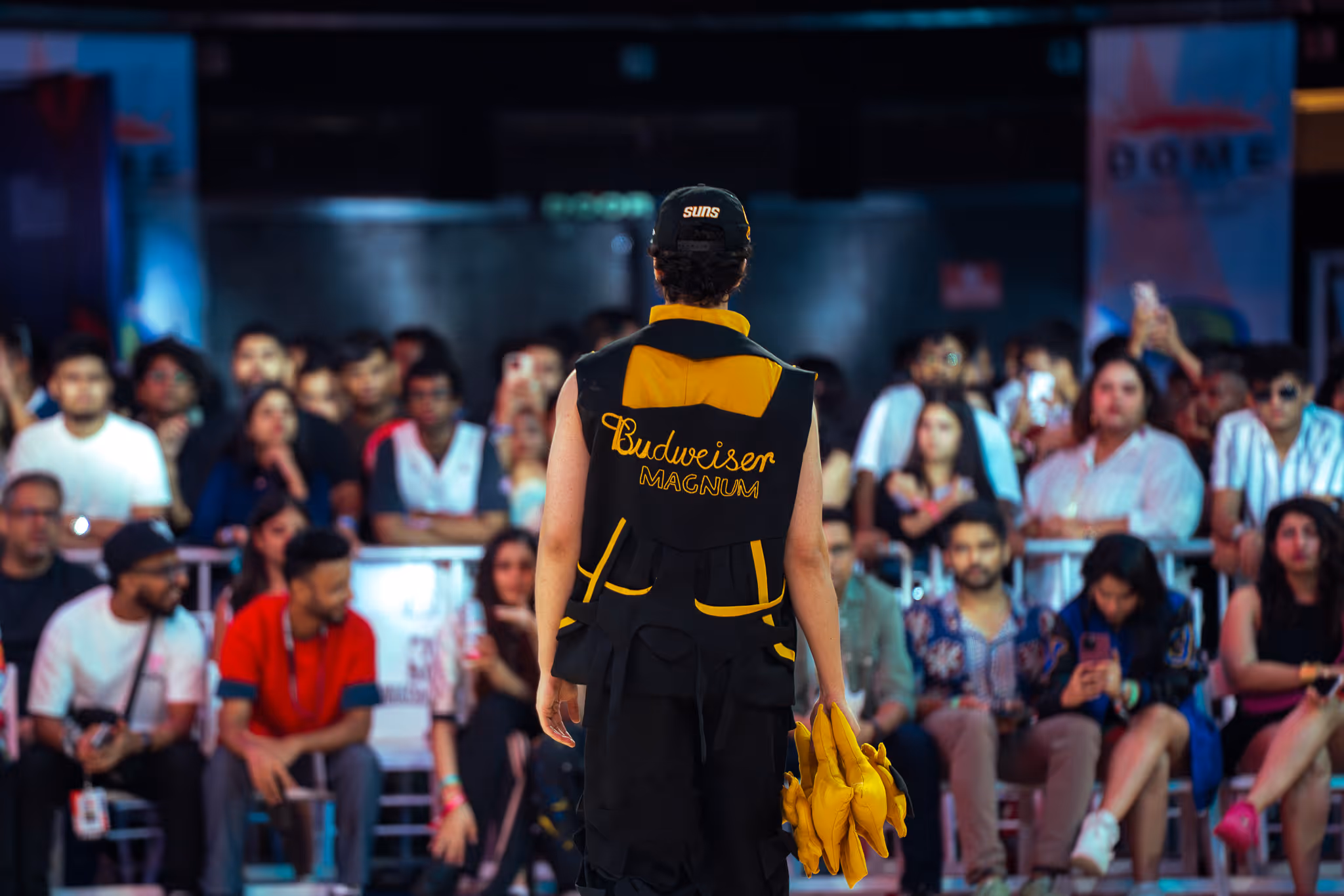 Walking Vertical ➹ is a Dehradun-based fashion brand founded by Akash Patwal, and my collaboration with him began in Summer 2022 after a chance meeting. What started as photo manipulation work for a GQ feature quickly evolved into a long-term creative partnership spanning photoshoots, brand identity design, video production, and event work. A major milestone came in early 2023 with the creation of Walking Vertical's logo, derived from a WV stitch symbol Akash had been hand-sewing into his garments , which I digitized, refined, and developed into a full brand identity including voice, tone, and tagline in just five days. The collaboration continued into 2024 with a conceptually bold photoshoot for a stuffed bag design, and culminated in a high-profile NBA x Budweiser commissioned show in Mumbai, where I took on a hybrid role spanning creative direction, project management, visual and audio design, model curation, and BTS content production.