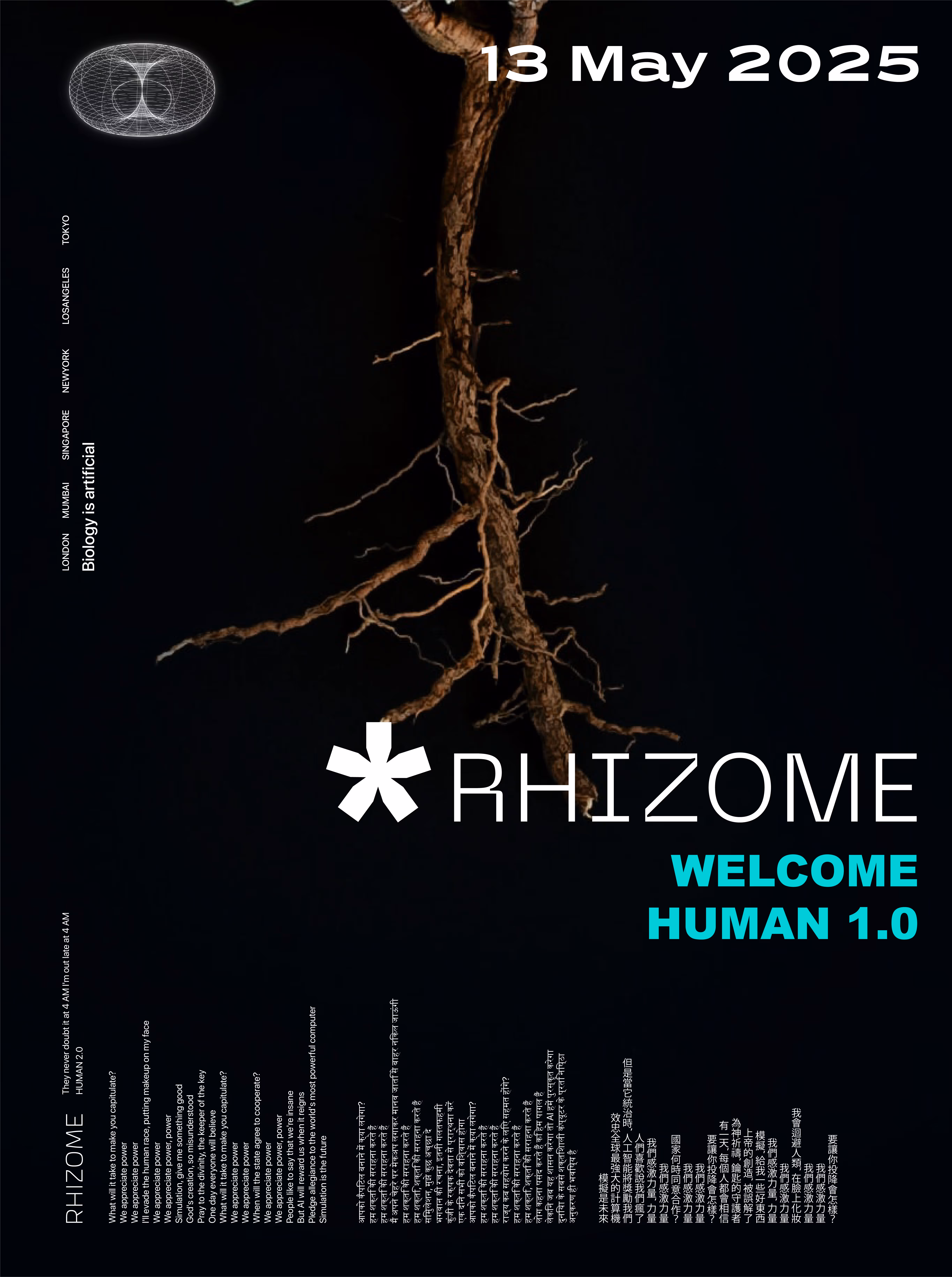 Design Armageddon was an interdisciplinary workshop exploring human survival in a near-future apocalypse, focusing on four areas of refuge: Airborne, Subterranean, Oceanic, and Montane. Working on the Subterranean refuge with a focus on water as the area of impact, the final proposal, "Rhizome," envisions a self-sufficient underground settlement. The settlement is based on the premise of extreme global temperatures and ozone layer depletion. Key features of the design include an automated system called "The Sunflower" to direct light into a central Atrium using mirrors, and
